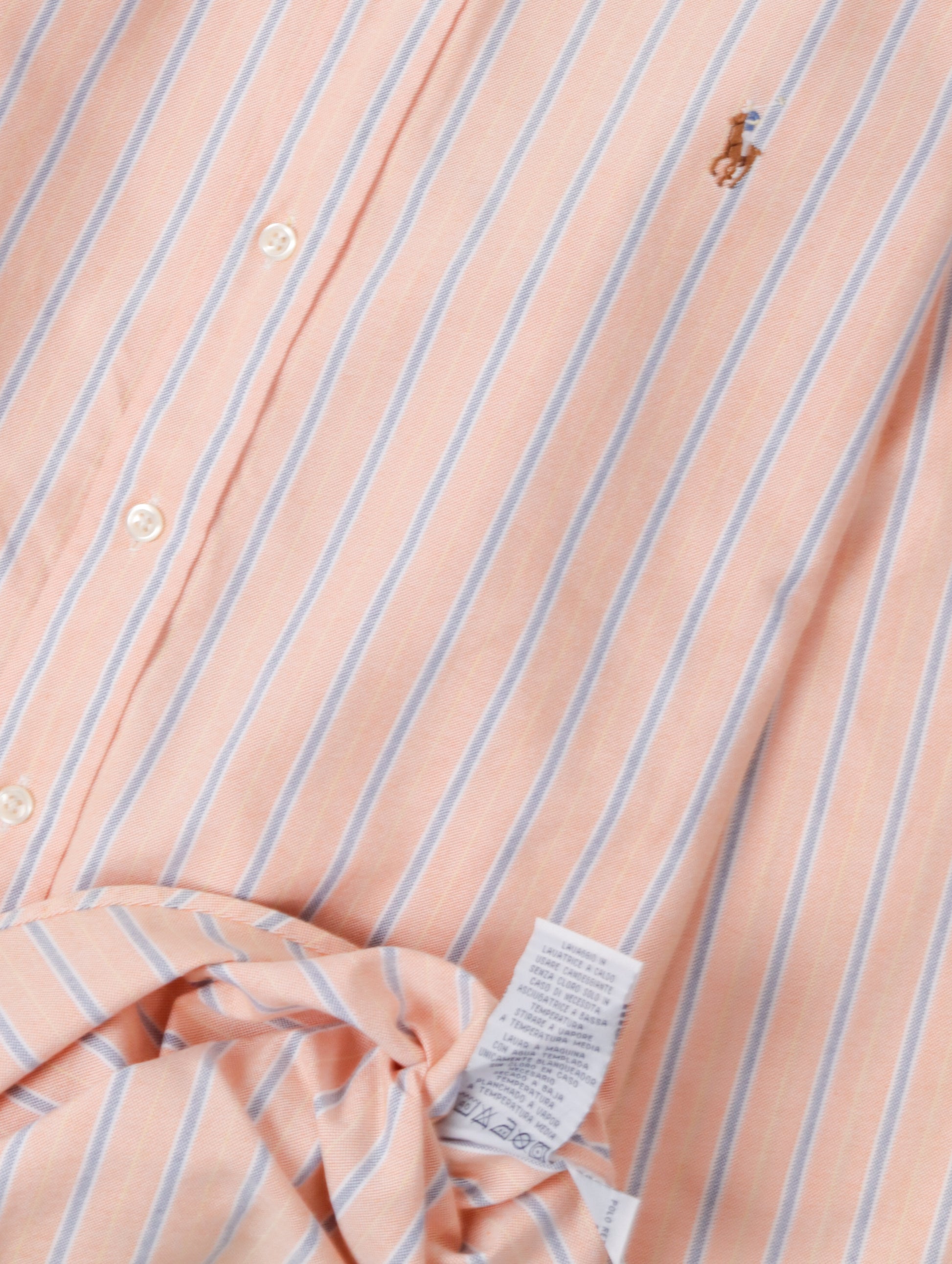 Camicia Polo Ralph Lauren salmone a righe blu, un capo versatile e di qualità, ideale per uno stile casual raffinato.